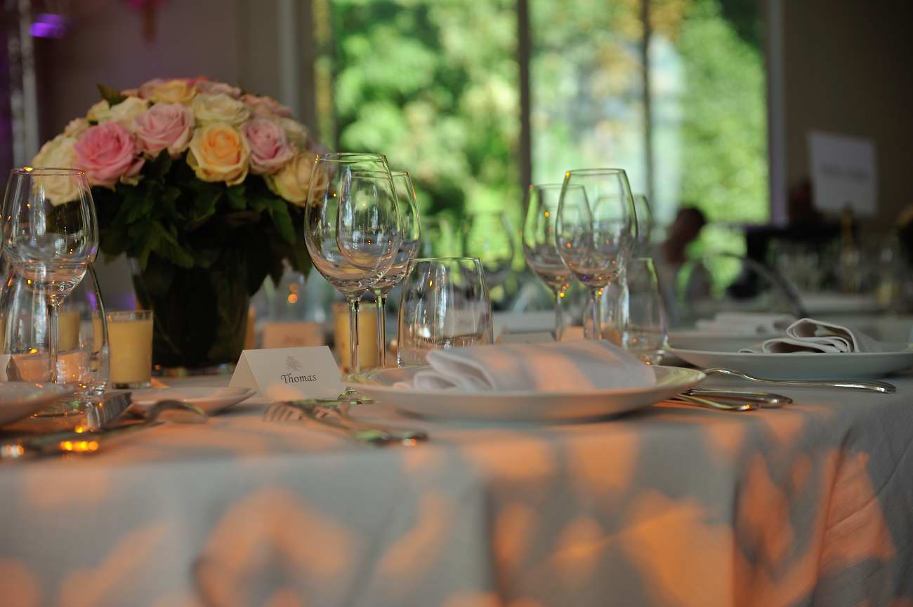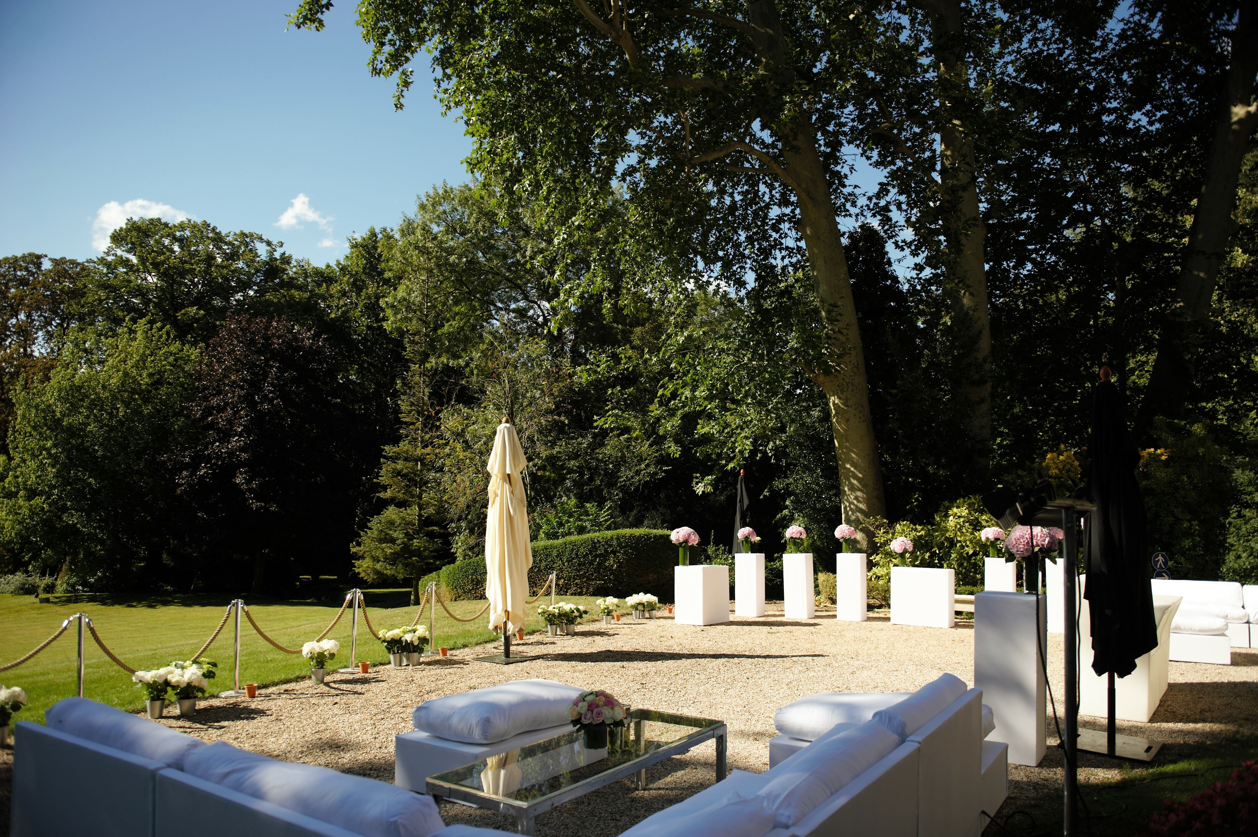 Organisation d’un dîner de mariage suivi d’un feu d’artifices. Aménagement de l’espace avec des créations de mobiliers sur-mesure, décoration florale, mise en lumière, cocktail dînatoire, feu d’artifices.